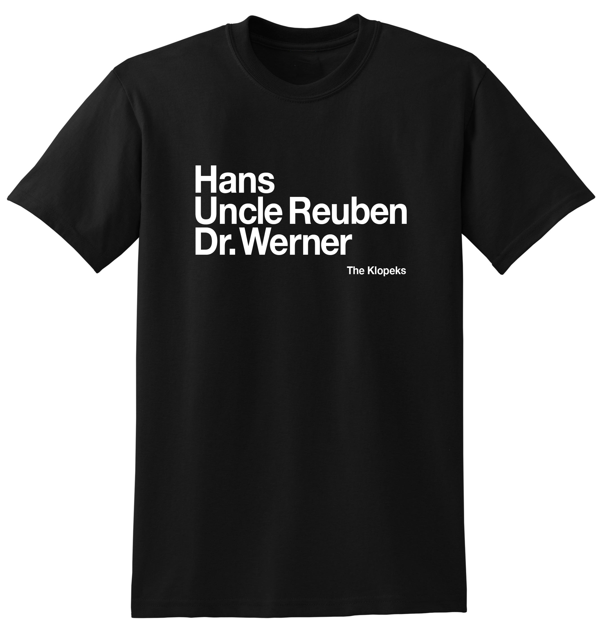 White/Black vinyl printed to a black/navy/white regular t-shirt.